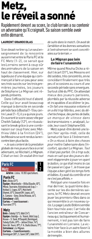 Re: L’Équipe du 15/09 : Metz, le réveil a sonné