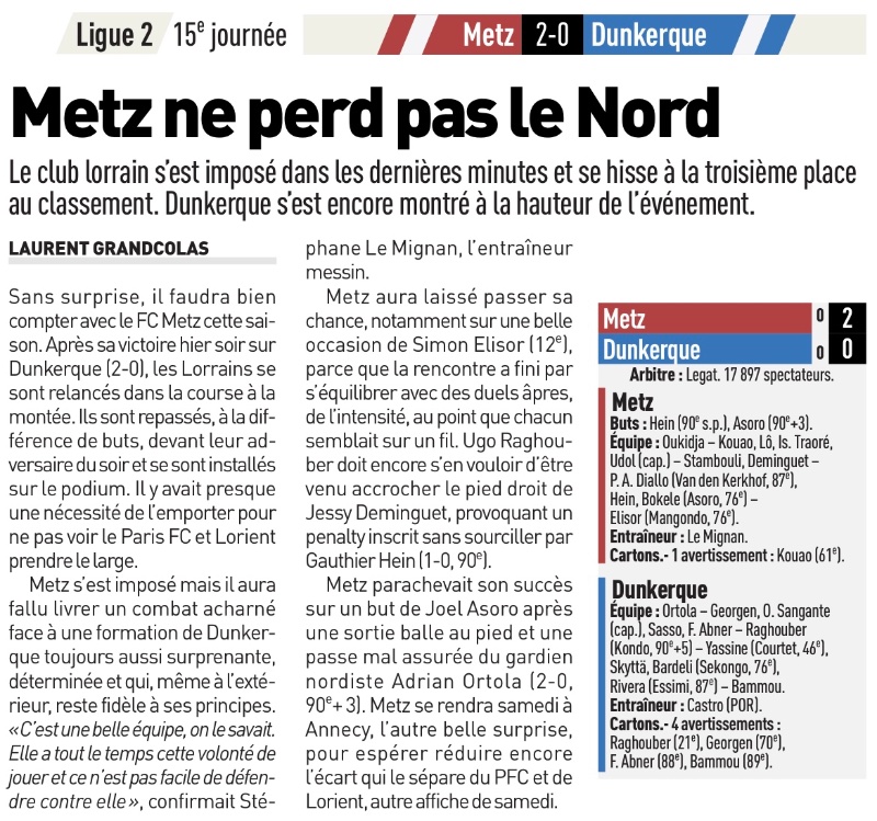 Re: L’Équipe du 10/12 : Metz ne perd pas le Nord