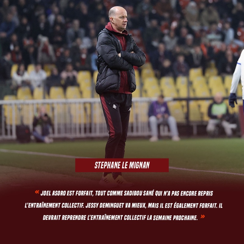 Jessy Deminguet était au soin aujourd'hui, il n' a pas pris part à la séance collective. Principe de précaution entendait on à Frescaty, afin de le préserver pour la suite.