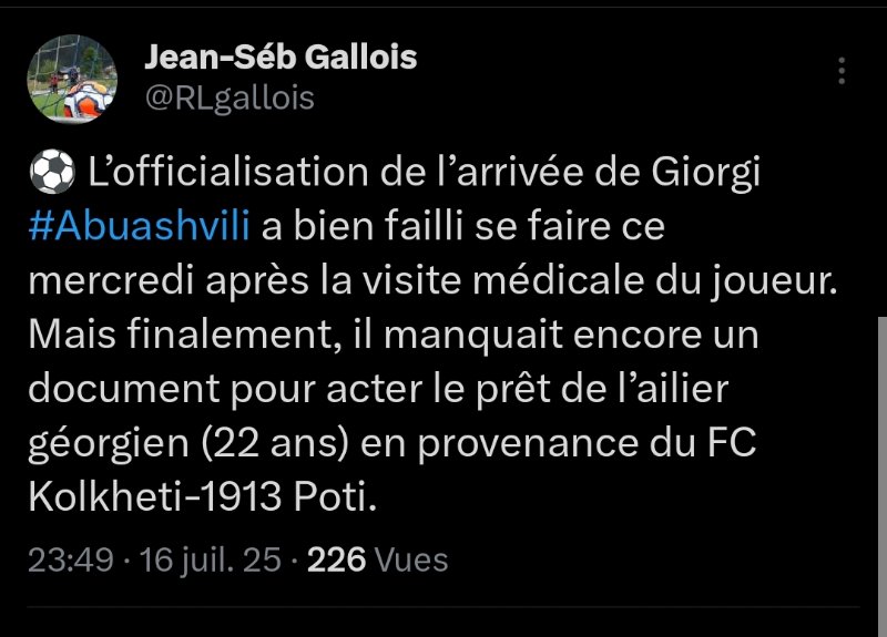 oui, et le RL aussiEvargalo a écrit :Cet article de L'Équipe parle d'un prêt avec option d'achat. C'est aussi ce qu'annonçait l'éphémère article du sitof ?RdNetwork a écrit : En tout cas le journaliste du RL a reposté le selfie des 2 Giorgi, et le journaliste de L'Equipe a re-partagé l'article confirmant sa venue https://www.lequipe.fr/Football/Actuali ... li/1578632