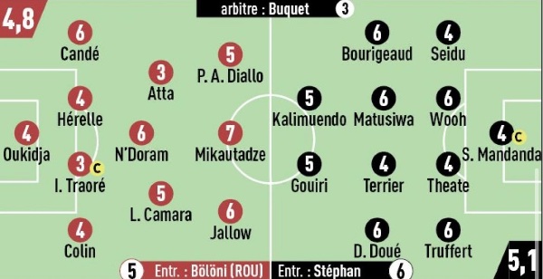 Préféré à Guéla Doué, il a soufflé le chaud et le froid lors de cette rencontre à Metz. Défenseur central de formation, il est plutôt solide dans le duel, mais il a manqué de vitesse pour suivre Diallo, sur le deuxième but messin. Il n'a jamais su prendre l'aile droite à son compte malgré une adversité très basse.