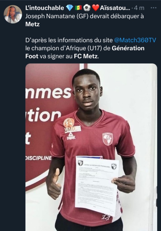 Alors soit il est déjà enregistré au FC Metz (étonnant vu qu'il continue à jouer au Sénégal, ne serait-ce que pour un match le 1er février), soit il ne pourra pas jouer en pro.