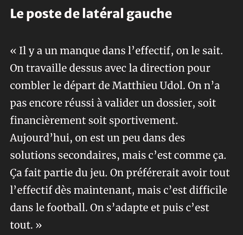 Alors oui c'est difficile, oui la date du mercato n'est pas adaptée mais on les connait ces contraintes il faut faire avec.