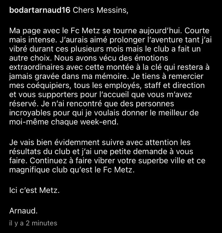 Grenat 1985 a écrit : Il quitte le FC Metz.