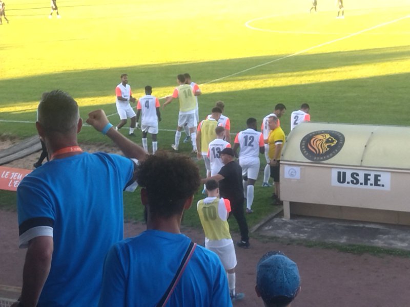 Ambiance bonne enfant, et même plusieurs chants lancés (trop calqué l'om à mon goût^^), et repris par les personnes s'étant déplacé pour Fleury : tu as même eu le "réflexe" de faire venir tes joueurs saluer le public, et la classe d'aller saluer staff et joueurs adverses. :ok: