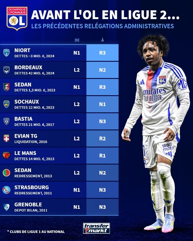 Déjà en novembre dernier, la sonnette d’alarme avait été actionnée. La DNCG avait interdit de recrutement le club lyonnais et menacé d’une rétrogradation en fin de saison sans garanties sur la restructuration de la dette d’Eagle Football Group, la holding propriétaire de l’Olympique Lyonnais, estimée à plus de 450 millions d’euros…