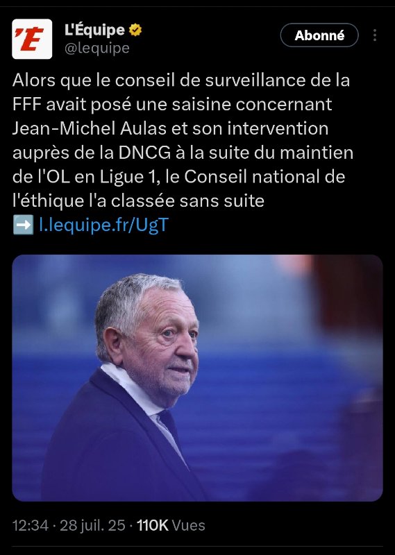 Exactement et j'ajouterai que c'est un cadeau empoisonné, car là , au lieu de descendre en ligue 2, ça sera la N3 ou la N2 directement et donc peut être 10 à 15 ans pour revenir en ligue 1.