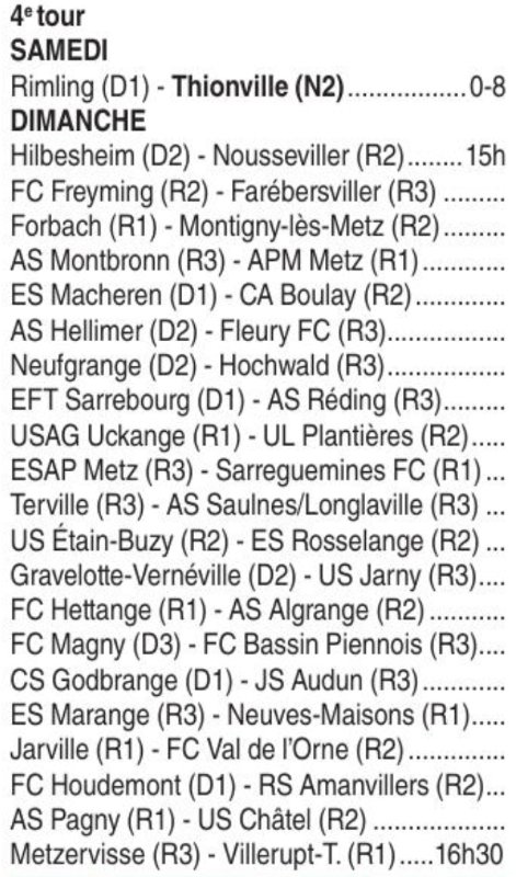 5° tour, faut espérer la réception d'un gros et pourquoi pas la fête au village, quand bien même ce dernier n'est pas branché football. Mais c'est le genre d'évènements qui peut participer à fédérer.Vieux CA Messin a écrit :