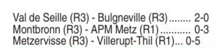 ES Rimling - US Thionville : 0-8 (le match a bien eu lieu sur le terrain de Rimling,qui au passage joue en maillot grenat)