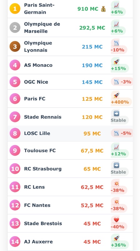 Pour Opta, il nous voit dernier,si on pouvait leur clouer le bec, et ce maintenir tranquillement, je plussoirai.StA a écrit : L’Equipe publie ce jour le classement des clubs ayant comptabilisé le plus grand nombre de descentes de D1 vers D2 et metz est bien sûr en tête avec 11 fois, devant Strasbourg 10. Un autre article donne metz et Le Havre omme favoris pour les 2 places de relégables. Bref, rien de surprenant!