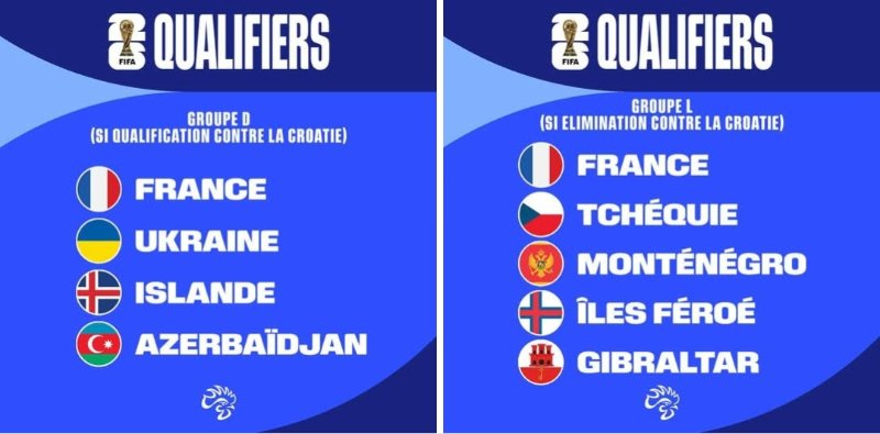 Comme l'indiquait le Capitaine ci-dessus, le tirage des éliminatoires du prochain Mondial dépendra du parcours des Bleus en Ligue des Nations. Voici les deux scénarios possibles, rendez-vous en mars 2025 pour être fixé :
