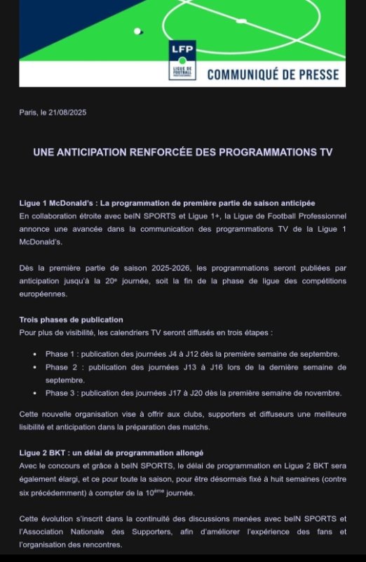 Commercialement il fallait attendre le lancement et pas avant donc technique commerciale tout à fait logique et surtout là ils vont appuyer sur le fait que c'est distribué partout et que eux vont perdre des PDM à cause de cela, c'est juste du commerce pur et dur.champ d'or a écrit :Il me semble que Canal+ ne voulait pas diffuser Ligue 1 + malgré les discussions menées par De Tavernot. Pourquoi la chaîne se manifeste-t-elle maintenant que l'on sait que le démarrage est un succès ?Lutin57. a écrit :