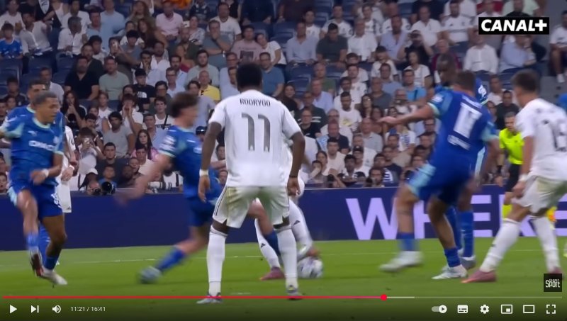 Voilà j'ai réussi à faire cette capture où l'on voit bien le pied de Belardi sur la cheville de Mbappé. Pour moi, comme pour l'intervention de Sané il n'y a pas faute sur ce type de contact rugueux, car forcément c'est celui qui y mettra la plus de puissance qui finira par prendre la balle et par toucher mécaniquement le joueur adverse à la fin de son geste.Pige Fille a écrit :Sur l'arbitrage rien à redire je dirais, je trouve également que le bras de Medina n'est pas dans une posture naturelle : il se retrouve perpendiculaire au reste du corps ce qui explique pourquoi l'arbitre a sifflé. Pour moi c'est la faiblesse des Marseillais ou leur projet de jeu qui leur a fait perdre des points contre un Réal largement prenable (j'avais l'impression de revoir celui de l'année dernière... dès que le niveau de l'adversaire s'élèvera, ils vont se retrouver face à leurs vieux démons de la saison 2024-25.Kent' a écrit :