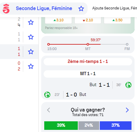 un des très rares sites où on semble pouvoir suivre les scores de ligue 2 féminine