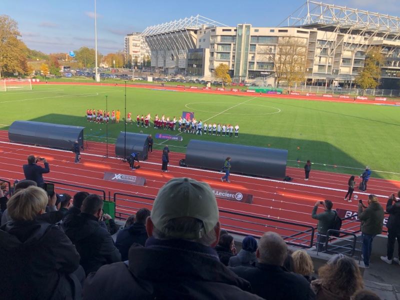 Les joueuses rentrent sur le terrain sous les applaudissements du public assez nombreux