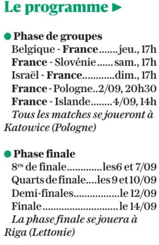 Entrée en lice de la France en fin d'après-midi contre une équipe normalement à notre portée.