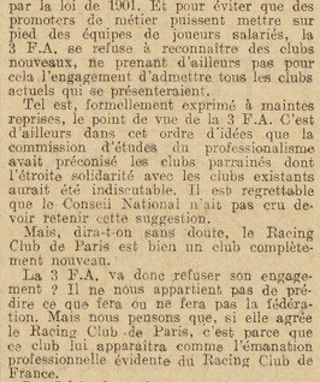 A la fin de l'article, il est question du RC Paris, "nouveau club" qui n'était en définitive qu'une évolution de la section football du RC France, comme le FC Metz n'est qu'une évolution de la section football du CA Messin.
