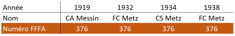 Donc, trouver le numéro d'enregistrement de la l'association FC Metz de 1932 ne prouverait rien, mais ne pas le trouver démontrerait une impossibilité d'année de fondation en 1932.