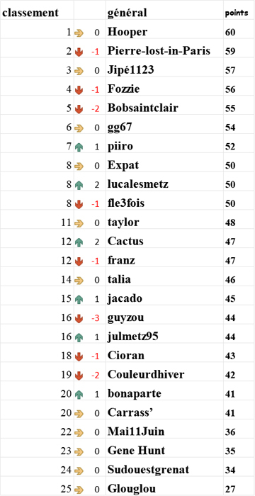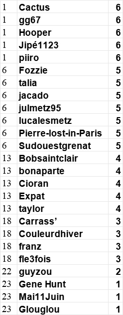 Cactus, gg67, Hooper, Jipé1123 et Piiro remportent cette journée avec 6 points