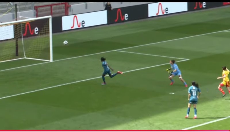 But opportuniste de Mbengue!!! 34ème minute, elle profite d'une relance hasardeuse de la défense Lensoise suite à un bon pressing messin.