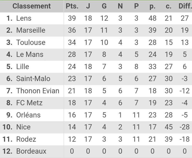 Cet après-midi,victoire de Thonon,Nice et nul de Rodez. Le classement en bas de tableau se resserre à nouveau