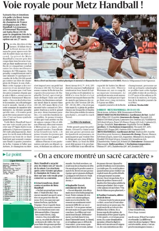 La PATRONNEPrzemysl. a écrit : Victoire 31-30 dans les dernières secondes. Le titre est dans la poche. Bravo les filles. Sacré match de Darleux.