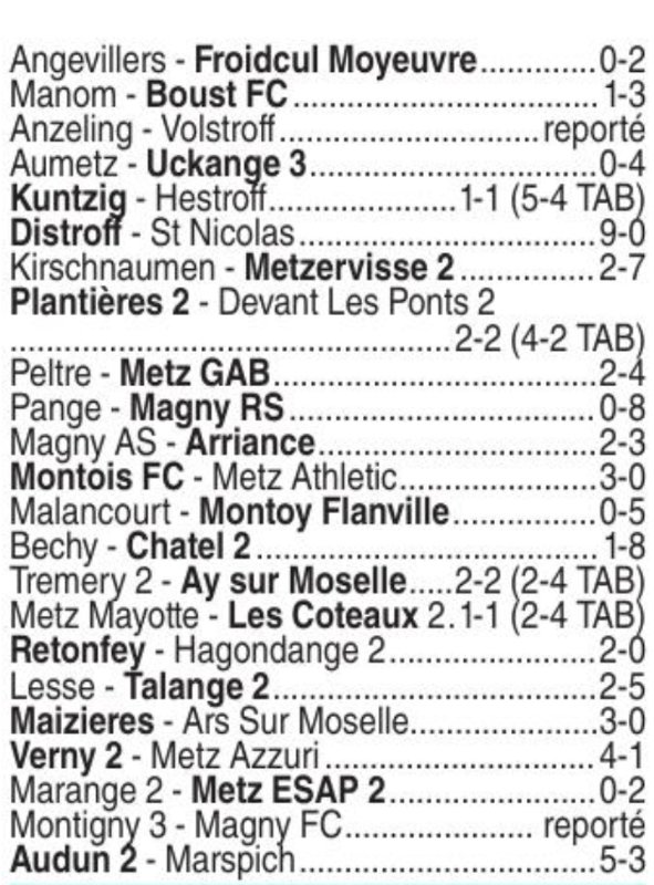 Suite des péripéties dimanche, match de R2 dans le "centre Mosellan".