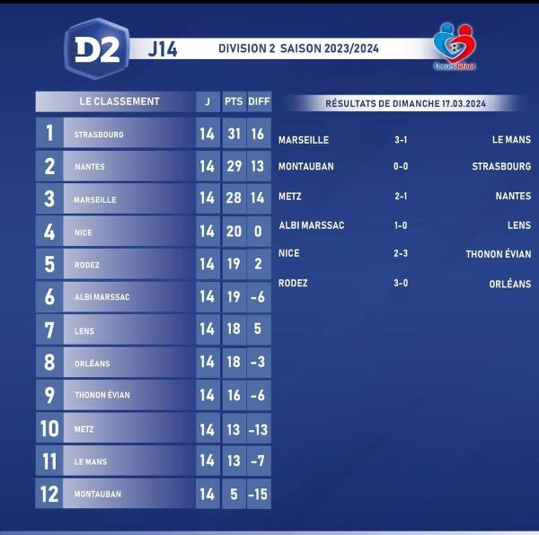 Coup d'œil sur le classement, après la victoire des messines sur Nantes cet aprem: