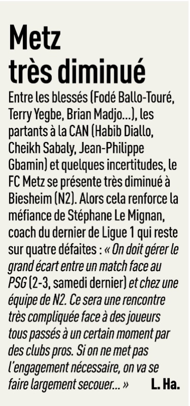 Re: L’Équipe du 20/12 : Metz très diminué