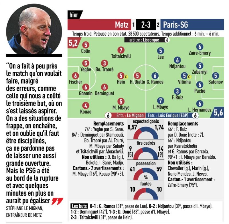 Re: [RL] Stéphane Le Mignan après la défaite du FC Metz contre le PSG : « On aurait pu égaliser »