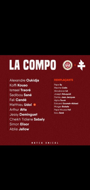 Je sais bien qu'on est dans la prépa mais pour un gros chantre du 4-4-2, il teste quand même beaucoup de choses différentes...Carrass' a écrit : Compo en 3 4 3 je suppose.