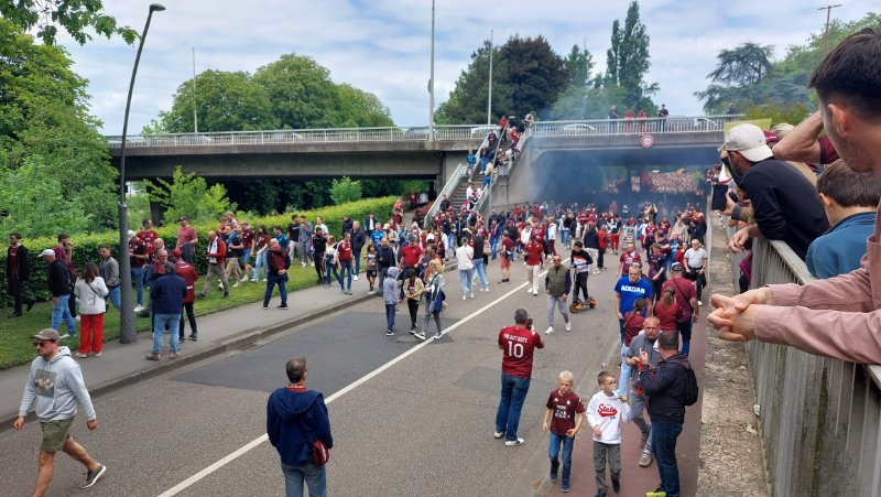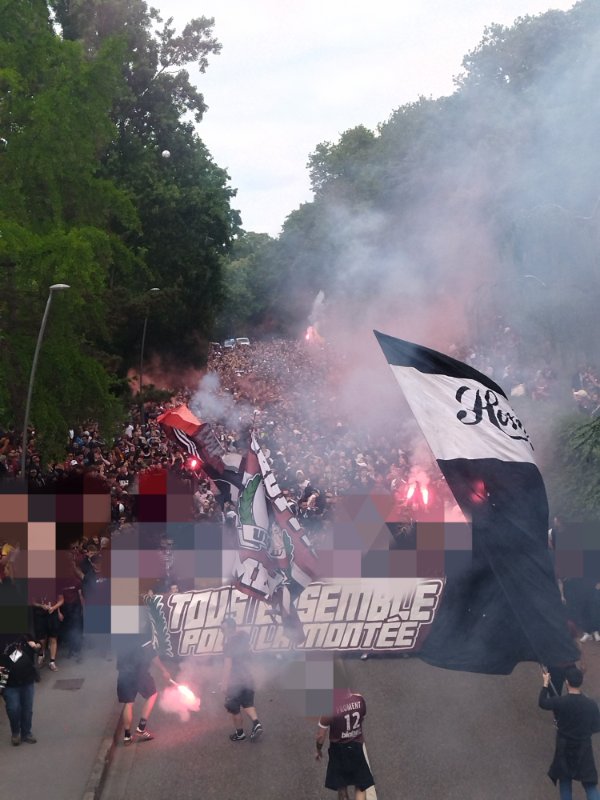 Coup de chapeau aux deux groupes de la TEB et de la TOB pour l'organisation et la gestion du cortège, une franche réussite qui a donné une autre dimension sur la journée et forcément sur l'ambiance qui il y a eu à St Symphorien dans l'ensemble des quatres tribunes dans cette rencontre de Playoff2 :