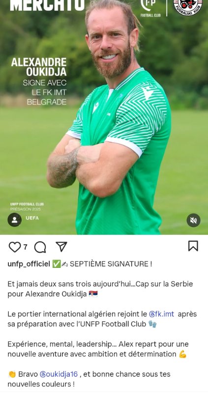 https://www.instagram.com/p/DL7-wZJo5y4/Grenat 1985 a écrit : Officiel : Alexandre Oukidja s’engage avec l’IMT Belgrade !