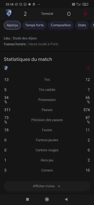 Ça vaut ce que ça vaut :Patsupfcmetz a écrit : Quelqu’un a les stats du matchs ?