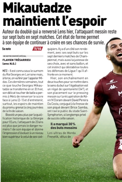 Bref, j'ai trouvé les derniers arbitrages plutôt corrects envers Metz, ça fait longtemps que je ne m'étais pas plaint, mais hier soir ça valait clairement pas 7 !!