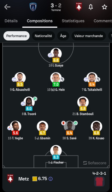 Exemple avec Sofascore: En revanche et comme je l’ai déjà dit, je ne lui jette pas la pierre, il ne jouait pas à son poste, ne connaissait pas ses coéquipiers ni la tactique et venait d’arriver donc n’était sans doute pas à 100% physiquement. La faute revient au coach et c’est malheureusement Yegbe et l’équipe qui en font les frais.