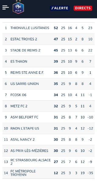 Sur ton classement la B de Nancy n'a pas 3 points en moins, c'est normal ?champ d'or a écrit : Heureusement que Raon n'a pas gagné.