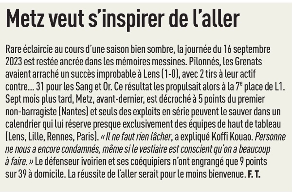 Re: L’Équipe du 12/04 : Metz veut s'inspirer de l'aller