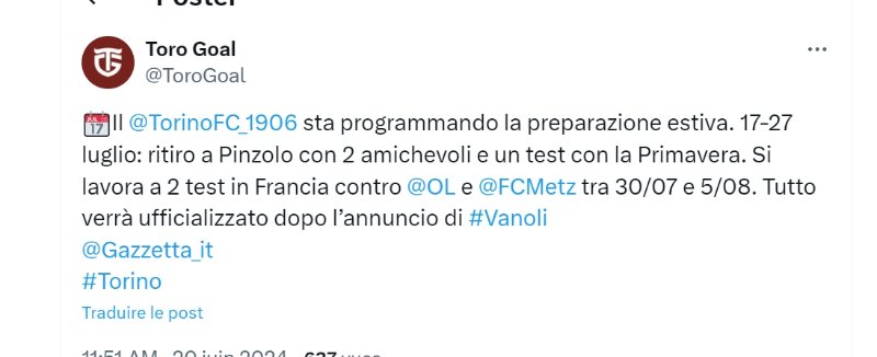 Amical contre le Torino le 5 août apparemment