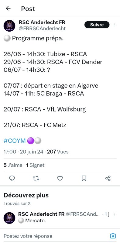 21 juillet amical contre Anderlecht contre une équipe remaniée je pense vu qu'ils jouent aussi la veille.