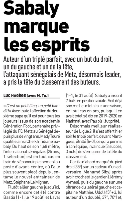 Re: L’Équipe du 25/09 : Sabaly marque les esprits