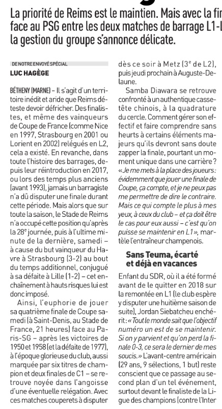 Re: L’Équipe du 21/05 : « On a eu du temps pour y penser »
