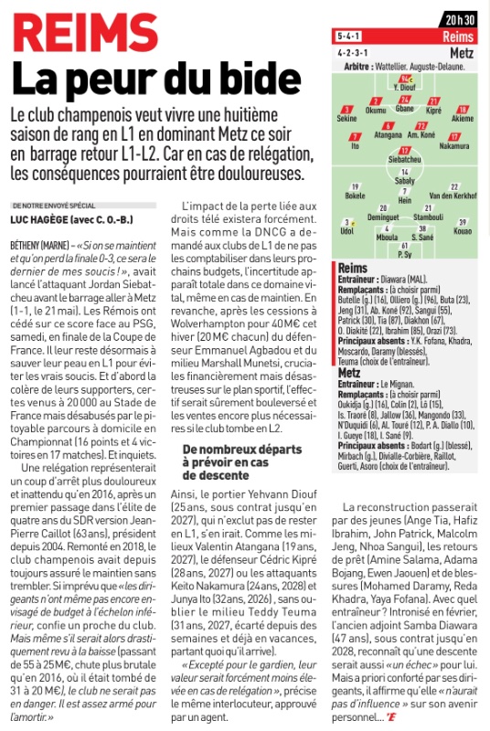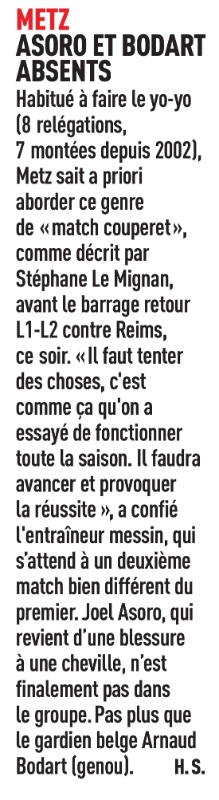 Re: L’Équipe du 29/05 : Asoro et Bodart absents