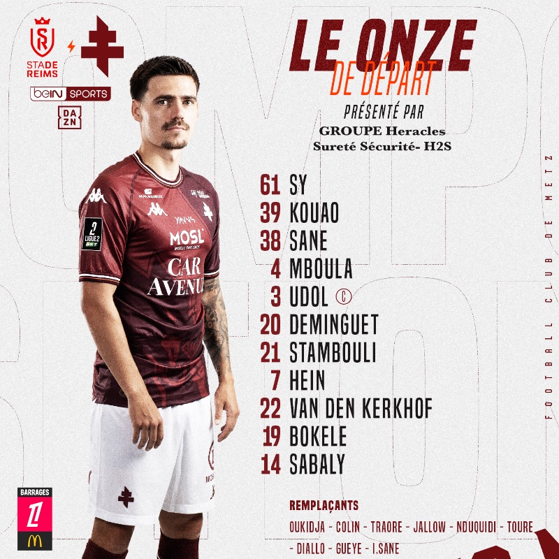 Bizarre de se passer de la technique de Jallow dans un tel match, mais soit ! SLM doit savoir ce qu'il fait ! Allez Metz