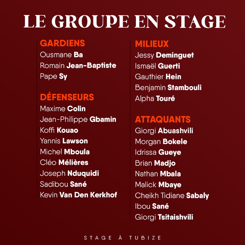 Pas de Lawson (blesse?) ni de Diallo et Asoro (départs?)