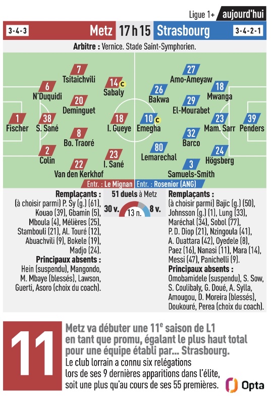 J'espère pas vrai tactique ni joueurs car elle me plaît pas du tout cette équipe. Et celui qui ne pense pas que c'est un vrai derby ne connait rien a l'histoire entre les 2 clubs. Metz Strasbourg c'est le vrai derby en L1 a des années lumière de celui contre les nancois