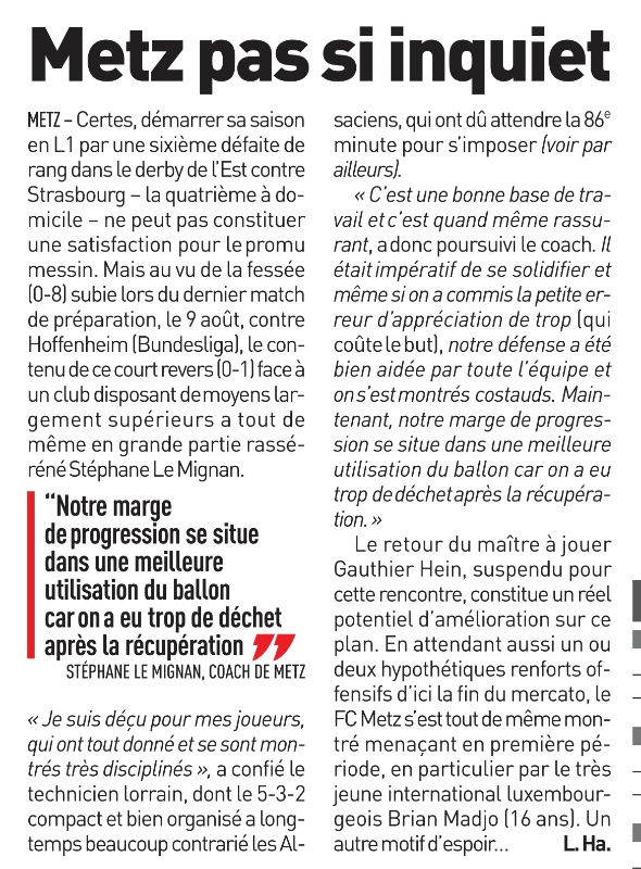 Re: L’Équipe du 18/08 : Metz pas si inquiet