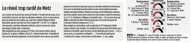 Mais pourquoi ne pas avoir mis le 4231 qui nous a donné les 3 victoires ? Et que Rennes s'adapte lui-même à notre jeu ?![]()