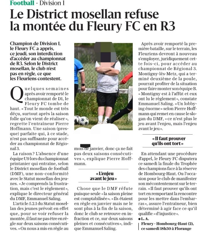 La question qui se pose pour nous c'est que nous sommes dans la même situation que Chatel en R3, qui n'est pas en règle au niveau des jeunes à 11 depuis le début de saison mais qui monte quand même en R2 au détriment de Verny qui est en règle....
