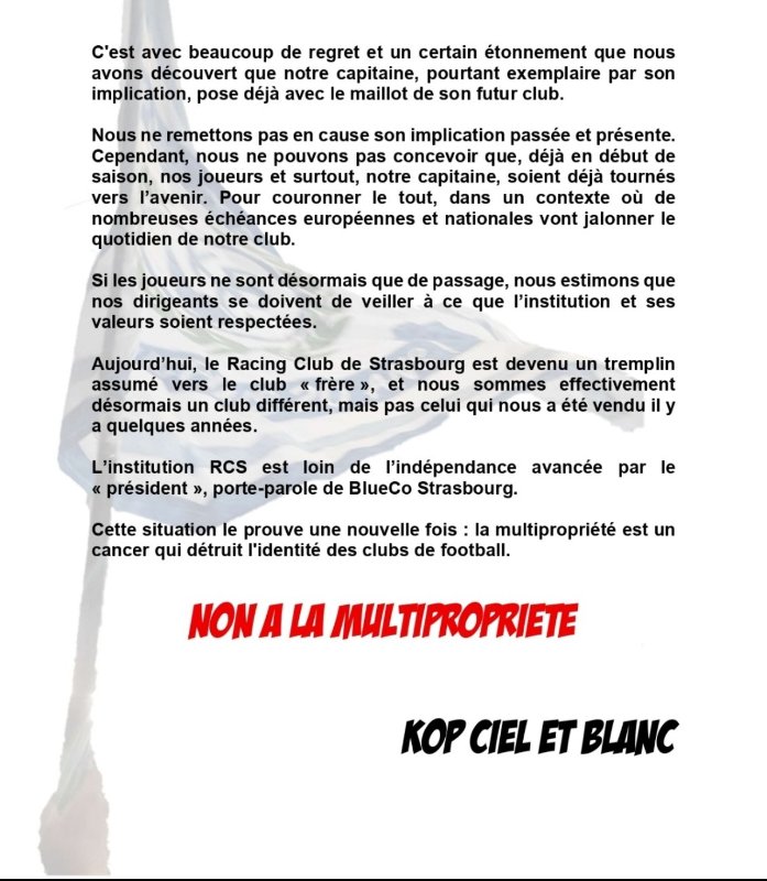 Les joueurs qui signent à Strasbourg, je pense qu'ils ne le font pas avec le pistolet sur la tempe, ils connaissent le système Blueco, ils ont le meilleur exemple avec Chelsea qui possède un nombre incalculable de joueurs.champ d'or a écrit : Des résultats ils en auront. Quoi que...